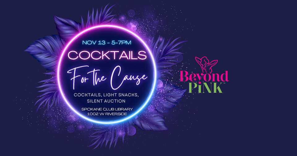 Host Organization: Beyond Pink Spokane Description: Join us for Cocktails and a fun silent auction to benefit Beyond Pink! Spokane Club Library Thursday, November 13th 5 PM-7 PM FABULOUS cocktails and silent auction items: GU Men's Basketball Tickets Signed GU...
