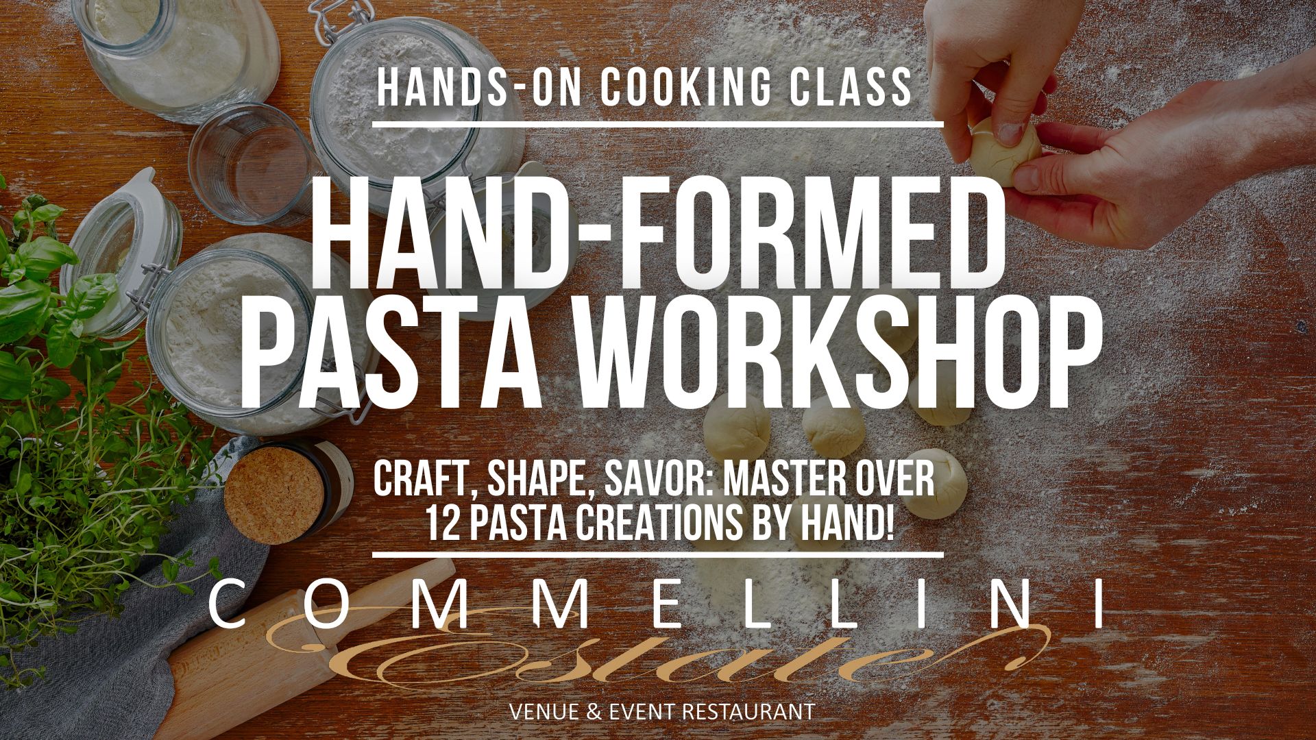 Host Organization: Commellini Estate Description: Hand-Formed Pasta Workshop Craft, Shape, Savor: Master Over 10 Pasta Creations by Hand! Dates: Tuesday 11/11/25 at 6:30 PM Class Duration: 2.5-3 hours Cost: $85.00 What You’ll Do Step into an immersive, hands-on cooking experience...