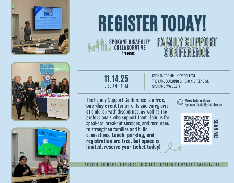 Host Organization: Spokane Disability Collaborative Description: The Spokane Disability Collaborative presents the Family Support Conference, a free one-day event for parents and caregivers of children with disabilities, and the professionals who support them. The day will feature keynote speakers, breakout...