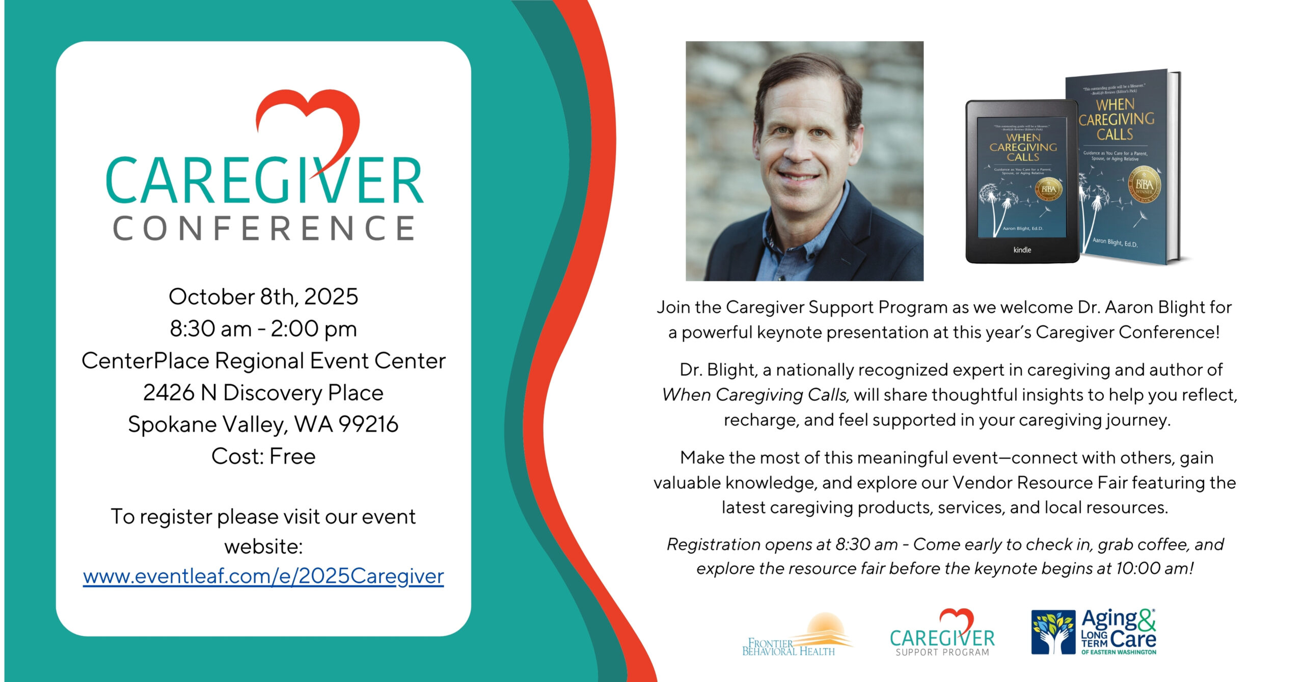 Host Organization: Caregiver Support Program (Frontier Behavioral Health) Description: Announcing the 2025 Spokane Caregiver Conference! The conference will be held Wednesday, October 8th, 2025 at the Center Place Regional Event Center, 2426 North Discovery Place, Spokane Valley WA, 99216. Join...