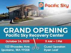 Host Organization: Pacific Sky Recovery Description: Pacific Sky Recovery is a new detox and residential treatment facility in Spokane Washington. Please join us at our Grand Opening on October 24th from 11am-1pm, ribbon cutting at 12pm. Food and Drinks provided....